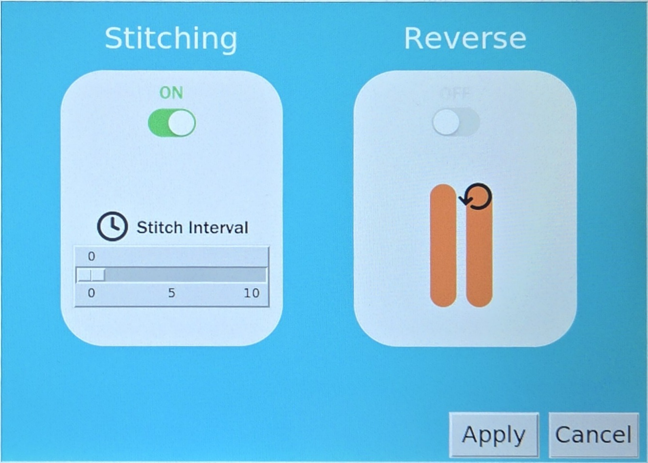Stitching lets you change the movement style of the belt. It will pause rotation momentarily in a rubbing motion which helps roll the product as it moves down the belt. Its default is set to ON.